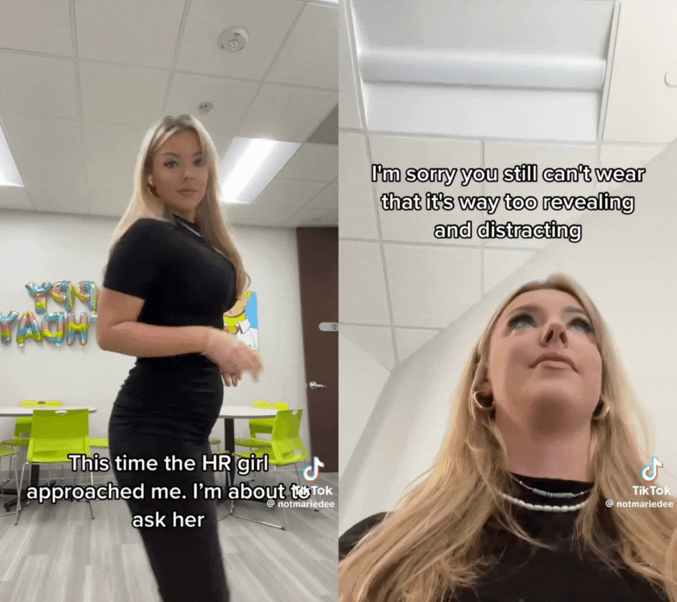 Several TikToks have gone viral showing employees being called into HR because their outfits were labelled “distracting.” In one, coworkers said the employee was “begging for attention.” In another, a staff member filmed herself being told her outfit was not “professional.” Across these videos, similar stories repeat.